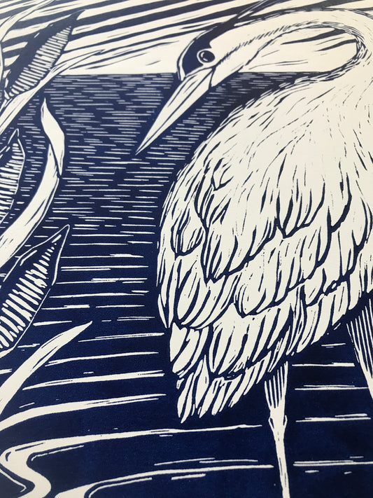 "At the Lagoon" Original Linoprint