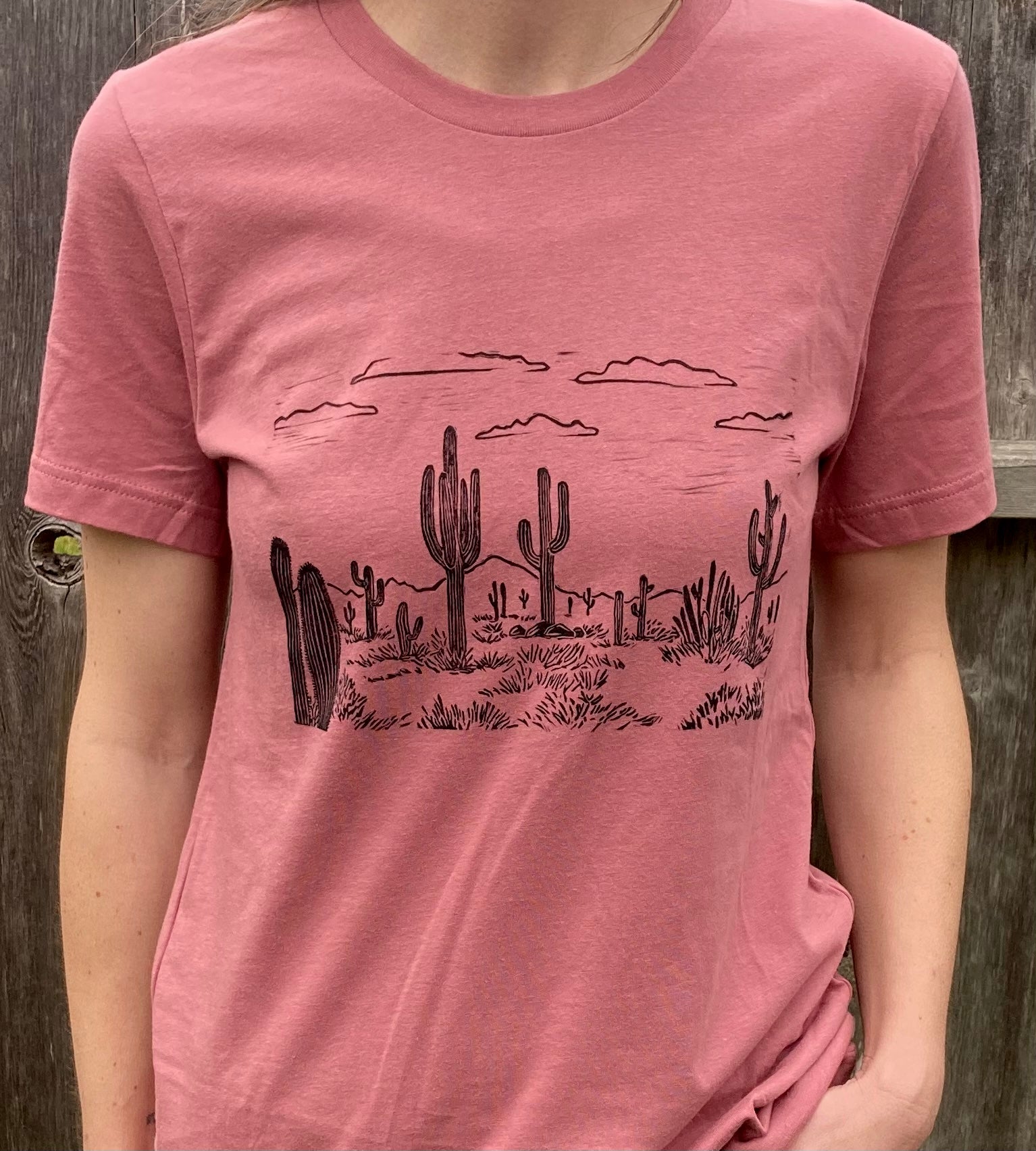 Super soft t-shirt hand printed with my cactus design. Unisex sizing. 100% cotton (with the exception of some colours*).