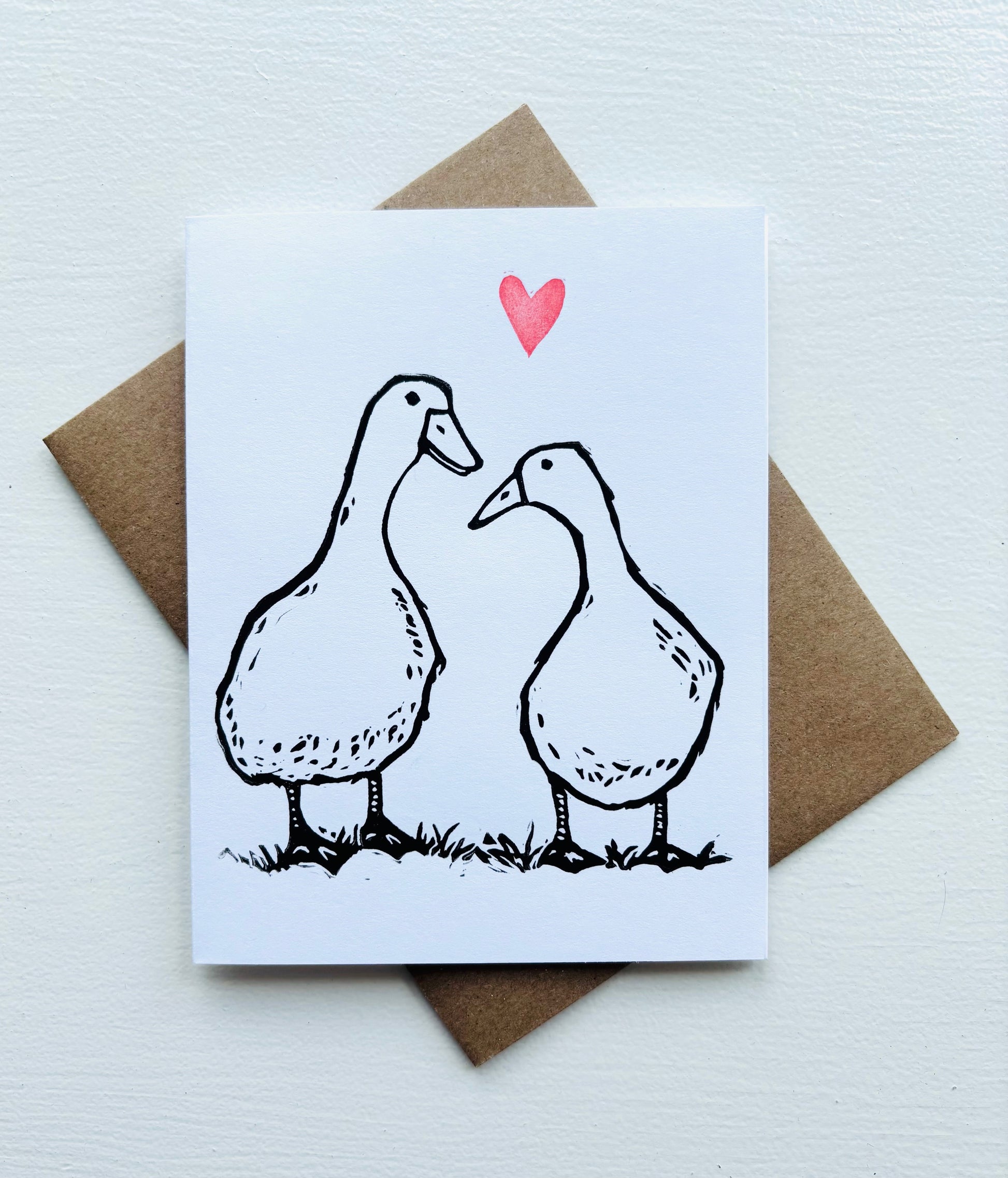 Hand printed linocut card. Blank inside. Printed on either white or kraft cardstock.