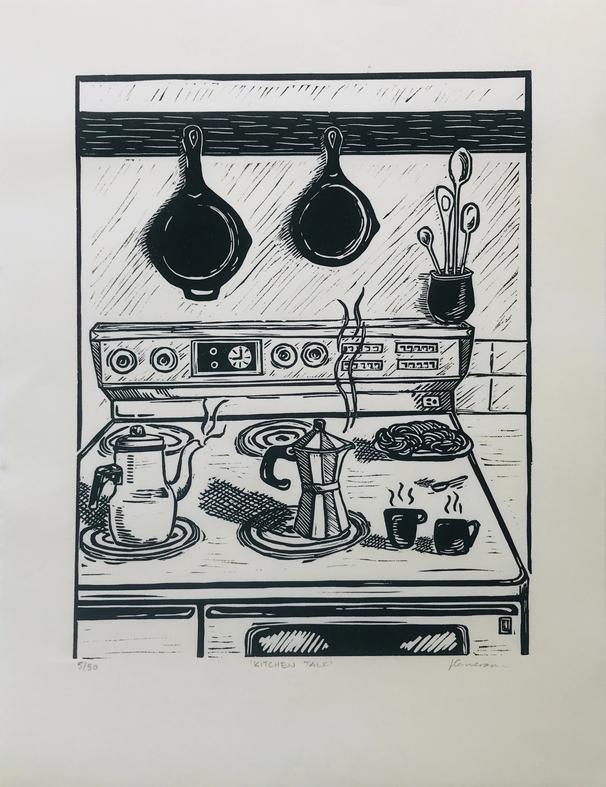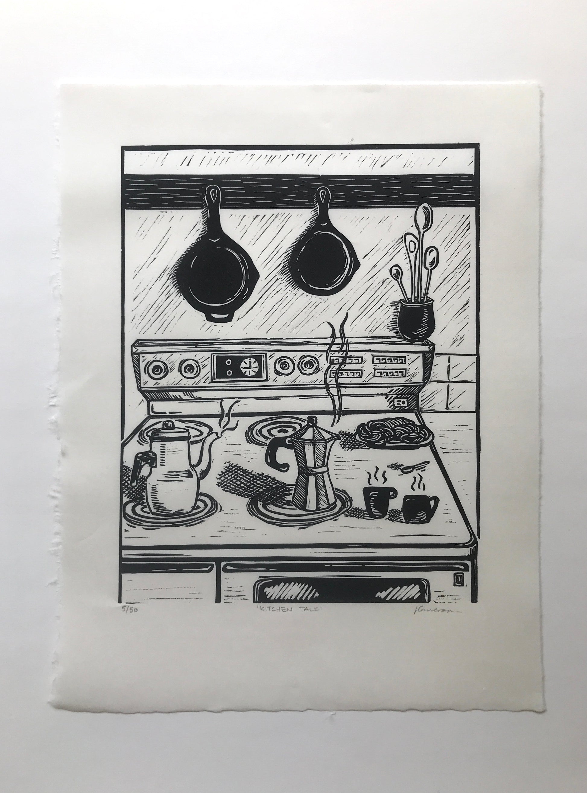 Kitchen Talk Original Linoprint